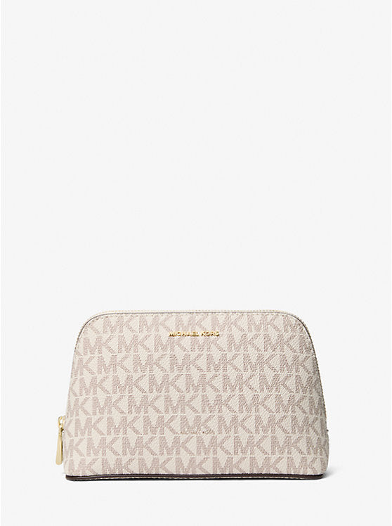Stash your beauty secrets in style with this chic signature logo travel kit. Crafted from durable coated canvas with glamorous gold-tone hardware, it is a jetsetter's dream come true. The spacious interior keeps your essentials organized while the zip closure ensures everything stays perfectly in place. It even arrives in a fancy gift box, making it a fabulous treat for yourself or a lucky friend!