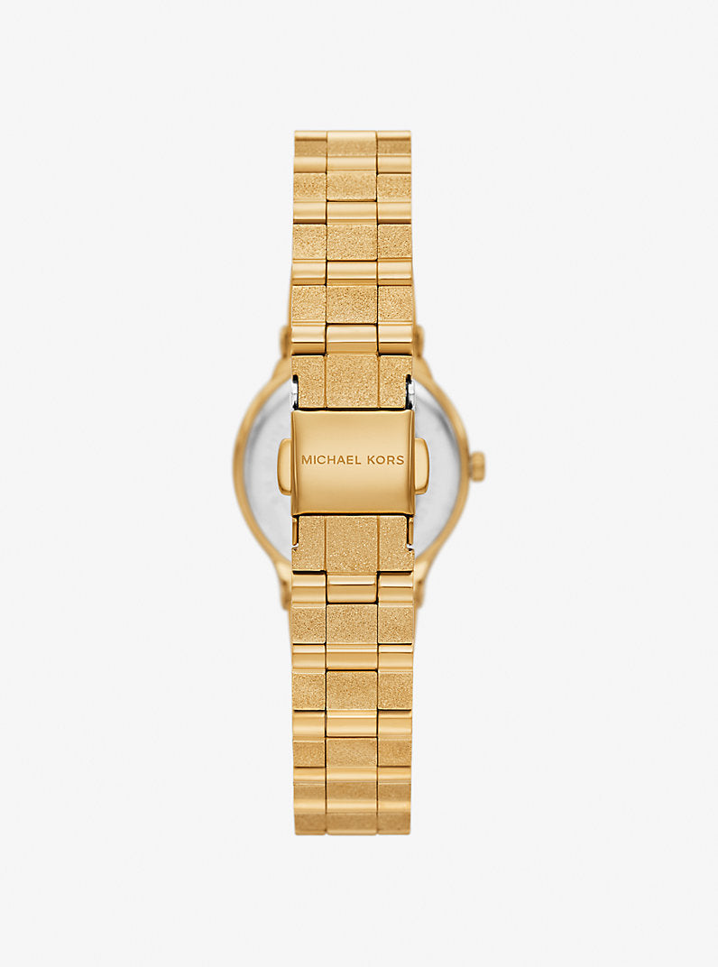 This petite treasure brings a splash of frosted magic to your wrist with its shimmering gold-tone finish. The sparkling dial and mixed-finish bracelet catch every ray of light, ensuring you shine at every garden party or gala. Crafted from durable stainless steel with a reliable quartz movement, it’s a tiny powerhouse of style that handles splashes with ease. Secure the clasp and let this elegant timepiece turn every minute into a glamorous celebration of you.