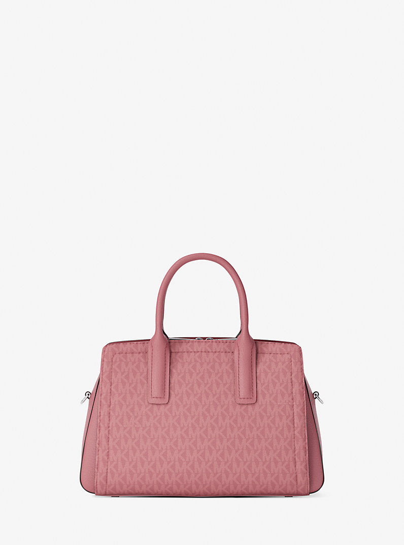 This structured satchel is your stylish companion from sunrise to sunset. Crafted with signature logo-print canvas and sleek leather trim, it keeps your essentials perfectly organized. The silver-tone hardware adds a dash of sparkle to your daily commute or weekend brunch. Pop on the adjustable crossbody strap and dance through your day with hands-free ease!