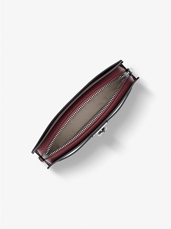This posh leather companion is so chic you might just skip the tote and wear it alone. Inspired by the iconic Hamilton, it flaunts a belted padlock and flashy chain-link details for that signature sparkle. Snap on the adjustable strap for a hands-free adventure or toss it inside your matching bag as a luxe organizer. It is the sophisticated sidekick your closet has been dreaming of.