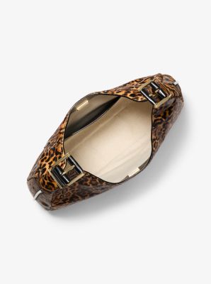 This hobo-inspired Nolita shoulder bag brings a wild touch to your wardrobe with its stunning leopard print calf hair. Its generous size makes it a versatile companion for both busy workdays and spontaneous weekend getaways. Crafted with gold-tone hardware and premium leather trim, this carryall is a total fashionista's dream. Keep your essentials organized in the back slip pocket while enjoying the effortless snap closure for easy access.