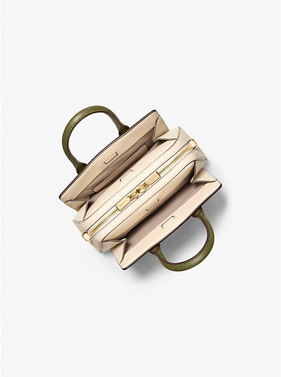 This petite powerhouse proves that the best things really do come in small, pebbled leather packages. With its structured silhouette and chic rounded side gussets, it keeps your essentials secure while you conquer the day. The contrasting top handles and adjustable strap offer effortless versatility for every mood and outfit. Gold-tone hardware adds just the right amount of sparkle to this everyday luxury essential.