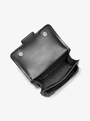 This polished leather shoulder bag brings a smart, modern silhouette to your daily rotation. Crafted from 100% premium leather, it features striking branded hardware that adds a touch of novelty flair. The fold-over design opens to reveal plenty of space for your phone, cards, and essentials. It's the chic companion you'll want by your side from morning meetings to evening drinks.