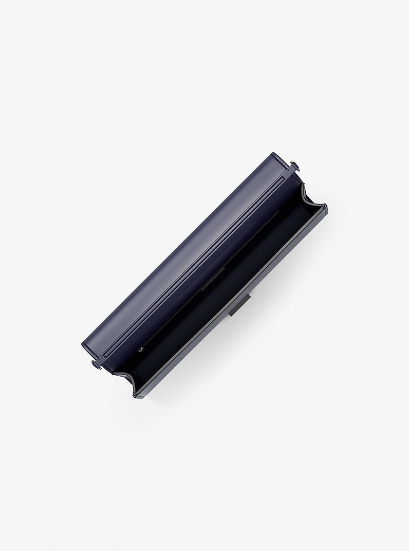 This metallic leather clutch is your new secret weapon for effortlessly chic nights out. Its structured shape keeps your essentials safe while the silver-tone hardware adds a dash of sparkle to any outfit. Slide it under your arm for a classic look or let the chain-link strap hang from your shoulder. It is the perfect versatile companion for dancing the night away or grabbing a fancy dinner.